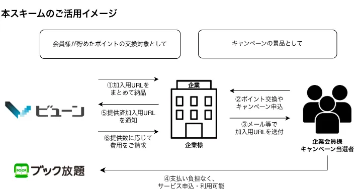 ビューンが提供する「ブック放題」は、800誌以上の雑誌と65,000冊以上のマンガが読み放題となる定額制サービスです。この度、企業のマーケティングや福利厚生においてデジタル特典を柔軟に配布できる「マーケティング・特典プラン」の提供を開始いたしました。その第一弾として、福利厚生サービスの最大手である「ベネフィットステーション」との連携により、会員様向けの長期利用優待を実現しました。
